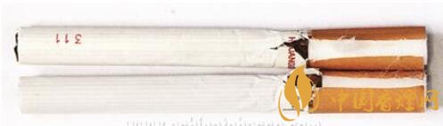真品煙支采用單一醋纖濾嘴,長度為25mm,煙絲切絲寬度均勻,煙絲疏松、光澤油潤性好、含碎末少。煙絲結構為葉絲、膨脹葉絲、膨脹梗絲和再造煙葉;假煙煙支過濾嘴較短,長度約為21mm,制絲工藝粗糙,光澤油潤性差、煙絲中含碎末較多,大量梗絲未經(jīng)過膨脹處理,一般無膨脹葉絲和再造煙葉,與真品特征存在明顯差異。