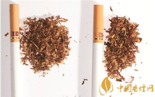 真煙煙絲切絲寬度與長(zhǎng)度適中均勻,顔色呈橘黃色,光澤油潤(rùn)性好,柔軟疏松,煙絲中含碎末少,煙絲結(jié)構(gòu)為葉絲、膨脹梗絲和造紙法再造煙葉;假煙制絲工藝粗糙,一般使用未經(jīng)處理的劣質(zhì)煙絲,色澤發(fā)暗無(wú)光澤,呈暗褐色,煙絲中含碎末較多,煙絲結(jié)構(gòu)一般為葉絲和沒(méi)有經(jīng)過(guò)膨脹處理的梗絲,無(wú)造紙法再造煙葉,煙絲結(jié)構(gòu)與真品特征存在明顯差異。
