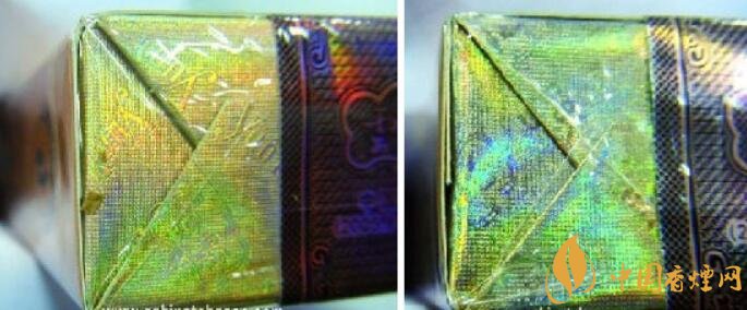 真品小盒商標(biāo)紙采用專屬高端特供進(jìn)口材質(zhì)的紙張,適用于軟包硬化包裝工藝硬度材質(zhì),顏色以黃金色為主色;假煙小盒商標(biāo)紙是普通材料,紙質(zhì)低劣,比較薄、沒(méi)有硬度,顏色呈現(xiàn)出淡黃色,與真品顏色差異明顯。