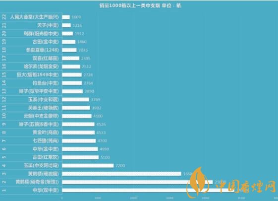 2018年,一類煙中支體量規(guī)模并不大。但在“中華”和黃鶴樓品牌的帶動下,一類中支市場迅速擴(kuò)容。小編梳理了2018年一類中支煙銷量情況,現(xiàn)截取其中銷量突破1000箱的規(guī)格,從中我們或許能夠看出些什么。
