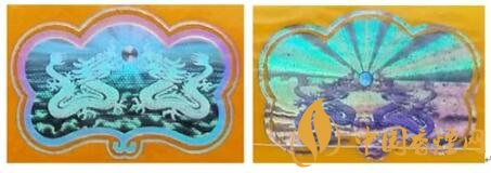 真品卷煙:雙龍戲珠激光全息防偽圖案,龍圖案清晰,龍鱗排列均勻規(guī)則,珠子呈現(xiàn)靚麗錐形,防偽底紋為排列均勻的點(diǎn)狀痕跡。