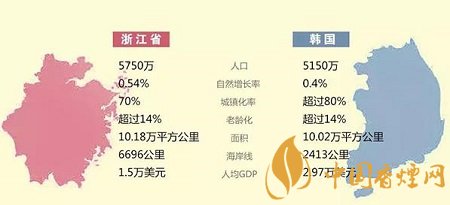 之所以選取韓國煙草與浙江煙草做比較,一個基本的依據是韓國與我國浙江省的人口、陸地面積等基本屬性“差不多”。