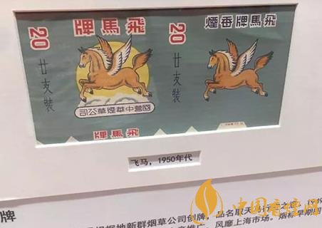 ——“飛馬”(上世紀(jì)50年代出品),1943年淮南抗日根據(jù)地新群煙草公司生產(chǎn),煙標(biāo)早期圖案為帶翅膀的飛馬?!?949年,國(guó)營(yíng)中華煙草公司以“解放區(qū)名煙”對(duì)其進(jìn)行推廣,風(fēng)靡上海市場(chǎng)。煙標(biāo)后來(lái)改為騰空躍起的棗紅駿馬。