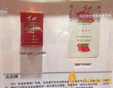 古田牌,1971年龍巖卷煙廠創(chuàng)牌,品名源于紀(jì)念古田會(huì)議。煙標(biāo)以古田會(huì)議建筑和一面紅旗為主圖案,寓意“成功從古田開始”。