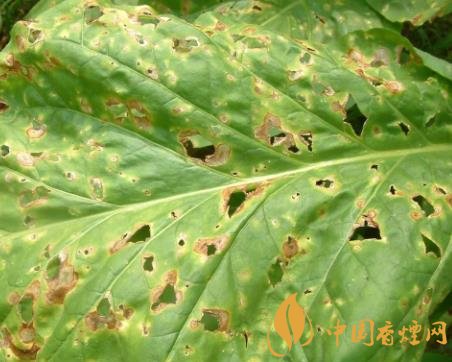 發(fā)病規(guī)律:①病菌靠風(fēng),雨和昆蟲傳播到煙葉上;②葉片發(fā)病后再向周圍傳播,形成再侵染;③氮肥過(guò)多,煙葉生長(zhǎng)過(guò)旺,種植密度大,田間管理差或少日照易發(fā)病。
