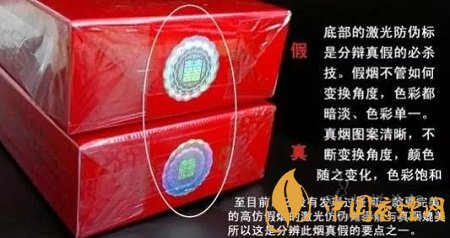 3、看底部的全息防偽標(biāo)識:真煙防偽標(biāo)識圖案清晰,變換角度后顏色、圖案隨之變化,色彩飽和;而假煙的防偽標(biāo)識,無論怎么變換角度,色彩暗淡、單一。