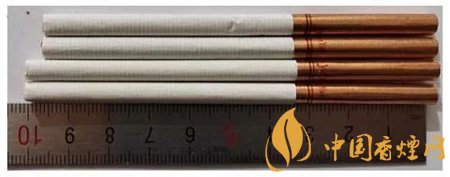 真品卷煙:煙支長(zhǎng)度為100mm,濾嘴處有四排激光預(yù)打孔,打孔透氣度好。卷煙紙顏色白,手摸煙支飽滿緊實(shí),搭扣處結(jié)合完美。煙絲呈現(xiàn)絲條狀,色澤基本一致。