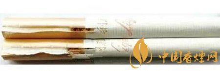 真煙煙支采用單一醋纖濾嘴,過濾嘴長度為25mm,卷煙紙上“liqun”字體筆畫較粗;假煙煙支過濾嘴長度稍短,約為24mm,卷煙紙上“liqun”字體筆畫較細,與真品特征存在明顯差異。(上真下假)