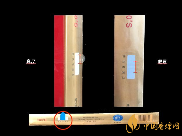 條盒拉帶的形狀是標準的半圓形,真品卷煙的拉帶寬度應為10mm,而假煙的拉帶大多數(shù)比較寬且形狀不標準。