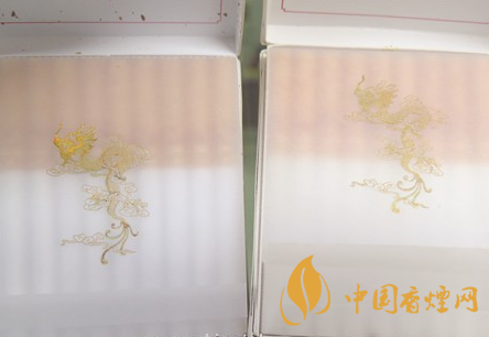 小盒商標(biāo)印刷工藝差異對(duì)比:真品小盒正面套印定位燙金“飛龍”圖案鱗片清晰,從頭至尾都能看到定位燙金工藝,紅色貫穿整個(gè)龍身,“鱗片”是雪里透紅,栩栩如生;假煙套印定位燙金仿制較差,鱗片無(wú)法達(dá)到真品的印刷工藝水平,印刷工藝與真品商標(biāo)圖案差異明顯。