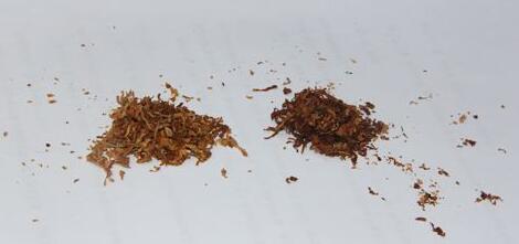 左真煙:真煙的煙絲色澤自然,黃中偏黑。煙絲中一般沒有未經(jīng)處理的煙梗,因為未處理的煙梗不易燃燒,容易熄火。正規(guī)廠家在制作時,對煙梗進行了膨化處理。