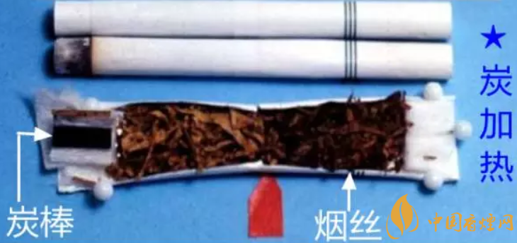 1、炭加熱卷煙,是在卷煙頭部加入一小段炭,點燃后產(chǎn)生熱量并傳遞給后部的煙草,進而釋放氣體。